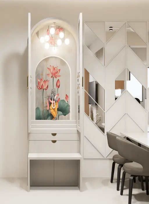 Design principles followed in 2BHK Aster Neo Interior Design align with modern living — prioritizing comfort, simplicity, and personality. The result is a refreshing home that perfectly represents a youthful spirit while offering timeless appeal.