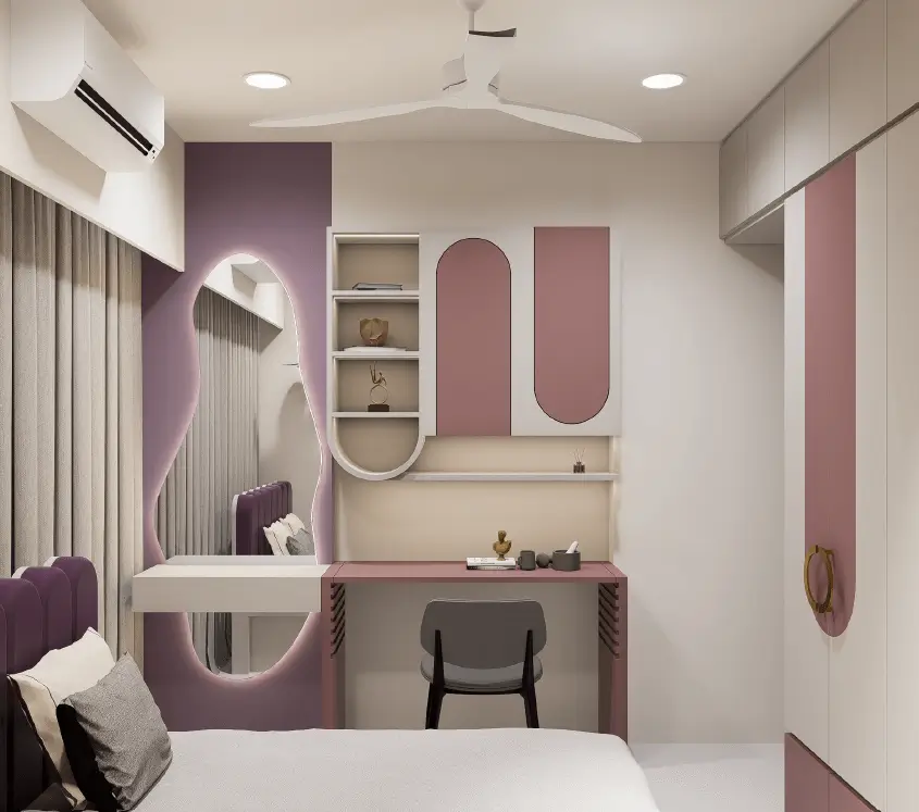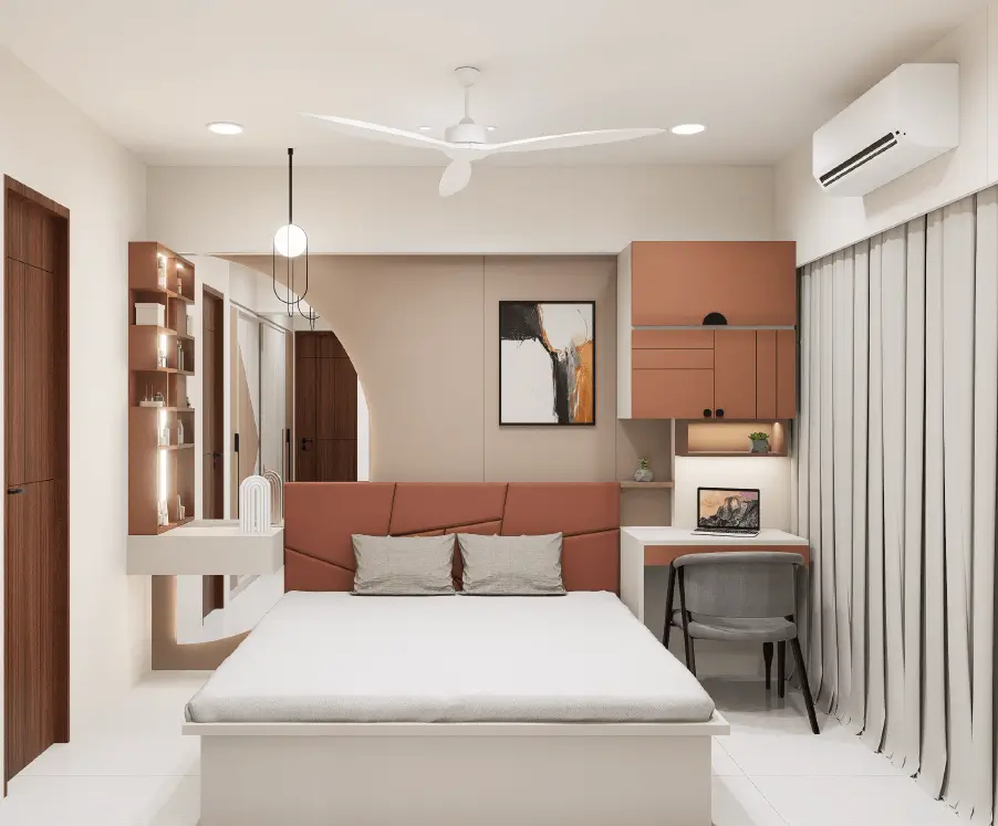 The 2BHK Aster Neo Interior Design showcases a colorful and lively space created for a young couple. Each room in this 2BHK home is designed to blend cheerfulness with functionality, making it ideal for modern living. The interiors at Aster Neo reflect a refreshing modern minimal style with smooth curves that bring uniqueness and flow to the overall design.